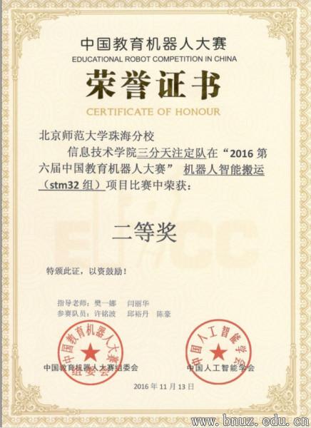 本网讯(通讯员 樊一娜)第六届中国教育机器人大赛2016年11月12日至13日在武汉华中科技大学光谷体育馆隆重举行,来自全国近百所学校共304支代表队近千人参加了此次大赛,规模创历届之最。经过激烈角逐,永利集团信息技术学院电气工程及其自动化专业的“三分天注定”和“七分靠打拼”两支代表队分别获得了智能搬运(STM32组)“二等奖”和双人擂台赛“二等奖”。
