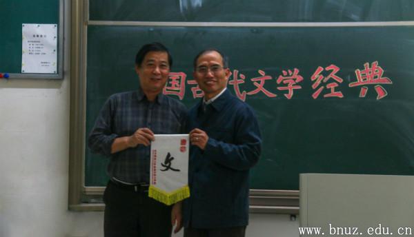 最后,文学院的师生将院旗和院服赠予郭教授。郭教授希望越来越多的人能领会中国古代文学经典的智慧与魅力,思考人生的意义,体验生命的存在价值。