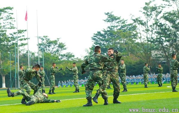 开训仪式最后由承训部队教官进行了匕首操、刺杀操、特种战术等7个科目的展示,精彩的表演赢得现场同学阵阵如雷掌声。