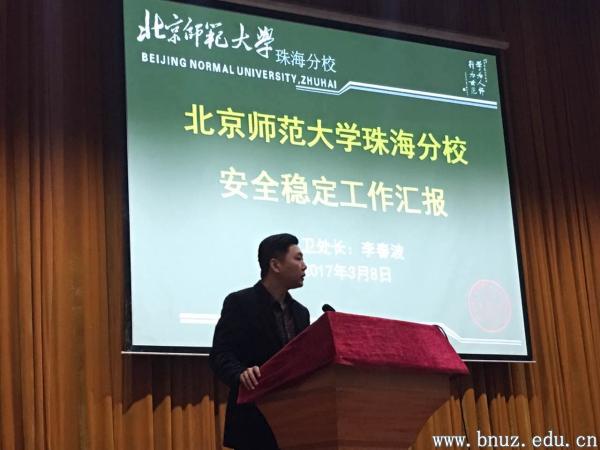 本网讯(通讯员 徐铖钰)3月8日,珠海市全市安全工作会议在珠海二中报告厅召开。珠海市副市长阎武,珠海市教育局、市公安局等领导在会上做重要讲话。永利集团保卫处处长李春波作为高校代表在会上做专项汇报。珠海市各学校和相关单位约130名人员出席了会议。