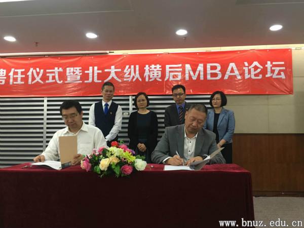 本网讯(通讯员 陈红丽 许蔚仪)4月15日,管理学院战略合作协议签署暨客座教授聘任仪式在国际交流中心报告厅顺利举行。北大纵横管理咨询集团创始人、总裁王璞先生,珠海新三板企业家联合会成员,北大纵横后MBA班成员,以及管理学院的师生们参加了活动。管理学院副院长何建华教授主持了签约仪式。