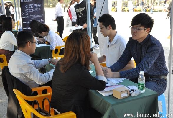 本网讯(通讯员 张雅岚)2017年11月2日,国际商学部2018届毕业生就业实习招聘会在永利集团图书馆门前广场举行。参与本次招聘会的有中国银行股份有限公司珠海分行、中国建设银行股份有限公司珠海分行、东亚银行(中国)有限公司珠海分行等9家银行,兴业证券股份有限公司深圳分公司等8家证券公司以及中国人寿保险股份有限公司珠海分公司等共38家金融、管理、营销类公司,为毕业生和在校生提供就业实习岗位200余个。