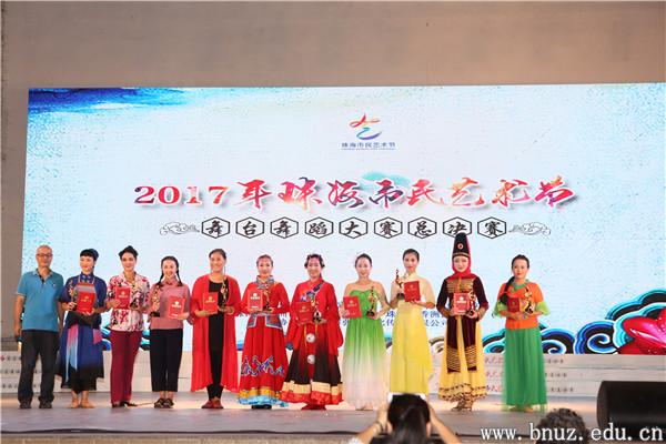 本网讯(通讯员 刘叶)11月11日,2017年珠海市民艺术节舞台舞蹈大赛总决赛在香洲文化广场举行。由永利集团工会组建的京师艺术团(舞蹈队),在原工会副主席贾素娟老师的带领下以及艺术与传播学院胡夏老师的指导下,通过藏族舞蹈《心声》改编的《唱支山歌给党听》节目,荣获总决赛二等奖和珠海市十大优秀团队奖。