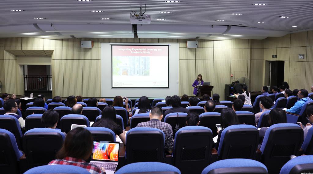 13日上午,在“体验式学习法”的讲座中,Enns博士阐述了体验式学习法(Experiential Learning)在高等教育中扮演的重要角色与作用,并结合视频用实际案例详细讲解与分析了体验式学习法的主要形式与模式,包括基于任务的学习(TBL)与基于项目的学习(PBL)、校企合作项目、服务式学习(ServiceLearning)、实习与工作坊等。