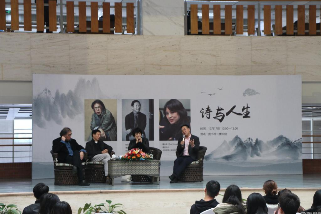 12月17日10点整,“北大三诗人”之一的诗人西川、著名朦胧派诗人欧阳江河以及中国当代优秀女诗人翟永明与永利集团师生齐聚于图书馆二楼中庭,进行了虽是以“诗与人生”为主题,却被诗人西川认为更像是在讲述“诗歌江湖”故事的交流会。