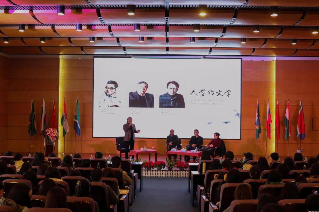 “大学的文学”主题讲座于12月17日10:30在国交三楼国会厅如期举行。张清华先生担任主持,三位嘉宾分别为中国当代著名作家、中国作家协会会员苏童,第九届矛盾文学奖得主、清华大学教授格非以及第三、第四届“大家文学奖”得主李洱。