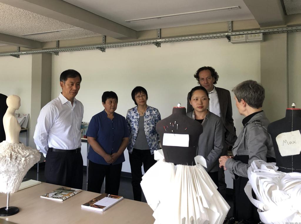 6月11日下午,访问团会见了欧福大学设计学院(原AMD时装设计学院)院长Claudia Ebert-Hesse教授,与汉堡校区参与服装与服饰设计专业2+2项目的教授座谈。Claudia Ebert-Hesse教授向访问团介绍了永利集团学生在德国参加时尚活动以及时装大赛的情况,并展示了永利集团学生在近两年课程里完成的时装作品。随后,双方就进一步开展硕士项目进行了深入交流。