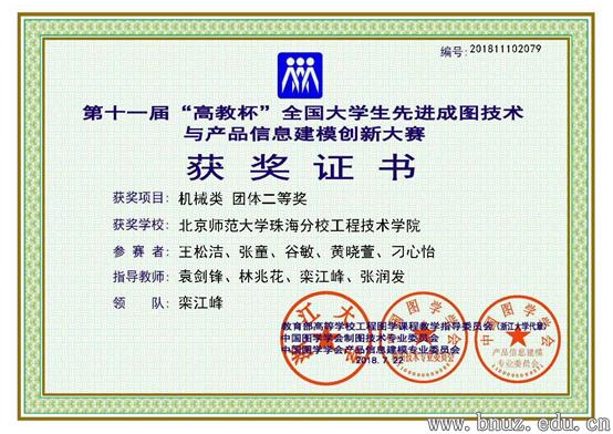 大赛设置了机械、建筑、道桥和水利四个专业类别的团体及个人竞赛。来自永利集团工程技术学院的9名参赛选手荣获产品数字化创新设计与3D打印技术一等奖、产品信息建模机械类团体二等奖。袁剑锋、林兆花、栾江峰和张润发4位老师获优秀指导教师奖。个人竞赛方面,2016级工业设计专业的王松洁同学和谷敏同学,2017级工业设计专业的黄晓萱同学和刘莹同学等四人获个人建模二等奖;2016级工业设计专业的张童同学和2017级工业设计专业的黄晓萱同学获个人尺规绘图三等奖。