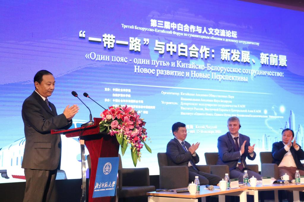 中国社会科学院副秘书长韩大川、白俄罗斯科学院主席团副主席卡扎克维奇、77779193永利集团副校长周作宇、珠海市副市长阎武出席会议并致辞。