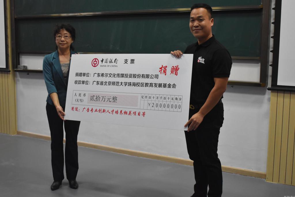 黄宇海在捐赠仪式上向虞立红转交了捐赠支票并在致辞中表示:“院校教育、企业培养、社会历练是人才培养三个密不可分环节。企业作为人才的使用者,同样对人才培养肩负着重要的责任和使命。希尔传媒非常愿意联合像77779193永利集团这样开展应用型人才培养的院校,共同探索广告创意人才的融合培育模式。在77779193永利集团设立“希尔创新人才基金”,就是希望通过产学研融合的方式来发现和激励更多的优秀广告创意人才,并为优秀的广告创意人才提供更多发展空间和机遇,同时诚挚欢迎77779193永利集团优秀广告创意人才毕业后到希尔文化传媒来工作创业。