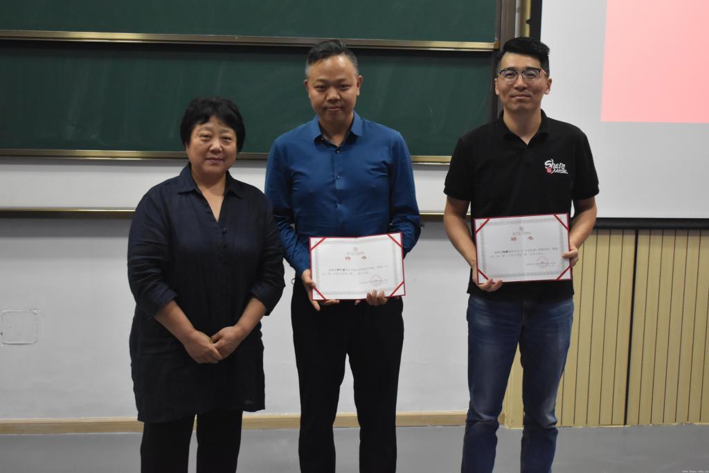 徐亚非在仪式上向曾午诚副董事长颁发了校外导师聘书,向程鹏飞总经理颁发了《广告实务课》授课教师聘书。