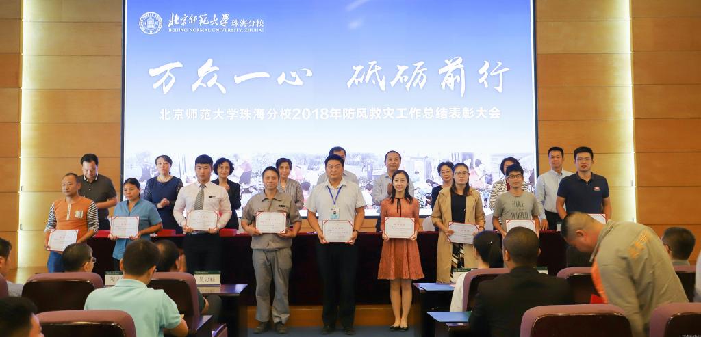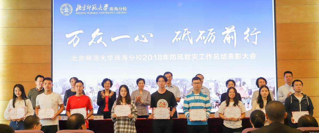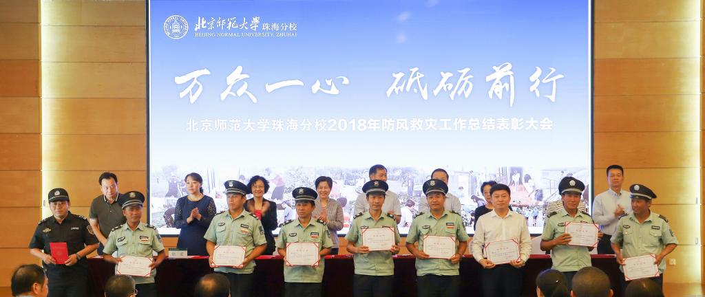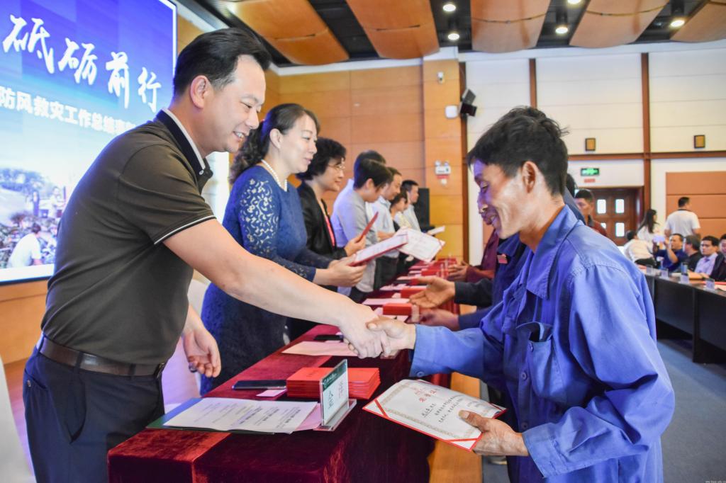 会上,校领导、校党委委员为防风救灾先进个人颁奖。