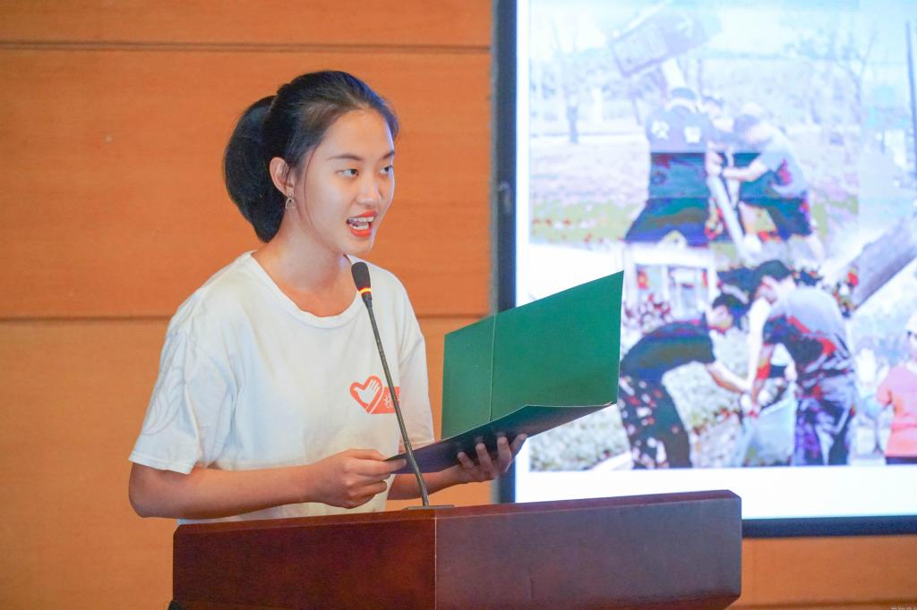 余悦琪作为学生志愿者先进个人代表发言。她在发言中表示,学校把学生的事当成头等大事,同学们也把学校的事看成自己分内的事情。看到台风过境后学校组织人员连夜开展救灾工作,许多同学都自发加入志愿者的队伍,有序参与到力所能及的校园清障工作中。在大家的共同努力下,“亚洲最美山谷大学”又恢复到了“山竹”袭来之前的模样,这让同学们感受到满满的幸福感。