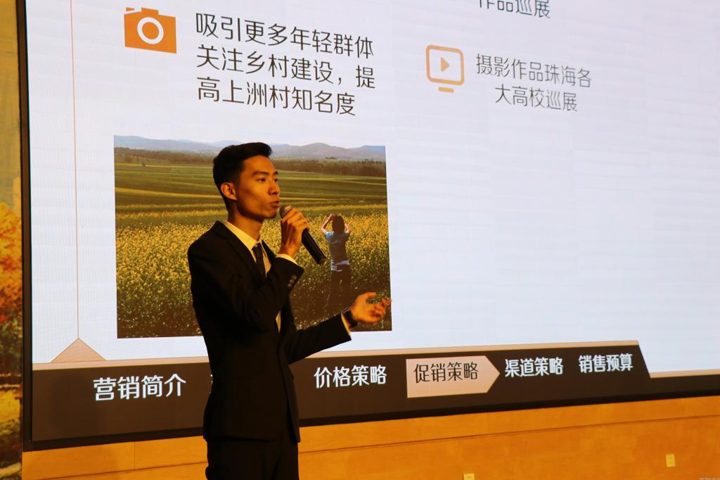 来自粤港澳大湾区八支高校参赛队伍在决赛场上展开了精彩的对决,纷纷为珠海乡村的发展建言献策。八支队伍就发挥菰稻米的养生和药用价值,契合现代人对于健康的新要求、传统农产品与现代互联网技术相结合,拓宽产品销路、发挥农家乐特色,带动乡村旅游业的发展等方面展示营销策划方案。
