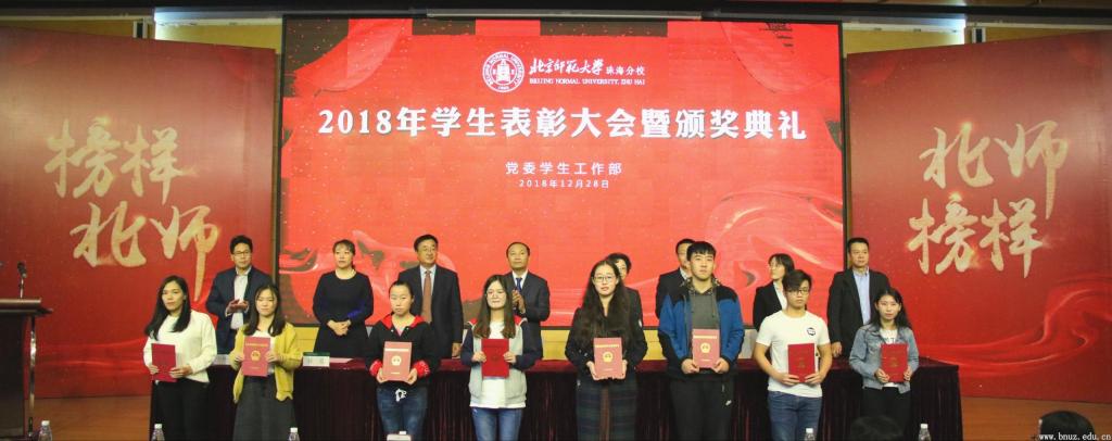 本网讯(通讯员 尹麗钧郭彦彤)12月28日下午,永利集团“榜样北师”2018年学生表彰大会暨颁奖典礼在国际交流中心三楼报告厅隆重举行。本次表彰大会暨颁奖典礼旨在深入学习贯彻党的十九大精神,全面落实全国高校思想政治工作会议及全国教育大会的精神和要求,紧密围绕立德树人根本任务,进一步加强学风建设,激励广大学生刻苦学习、奋发成才。出席表彰大会的领导嘉宾、参会人员有校党委书记耿向东、副校长虞立红及学校党委委员、各学院(部)及相关职能部门领导、各院部辅导员老师代表、获奖学生或代表,及其他学生代表、学生家长等。表彰大会由党委学工部部长李楠主持。
