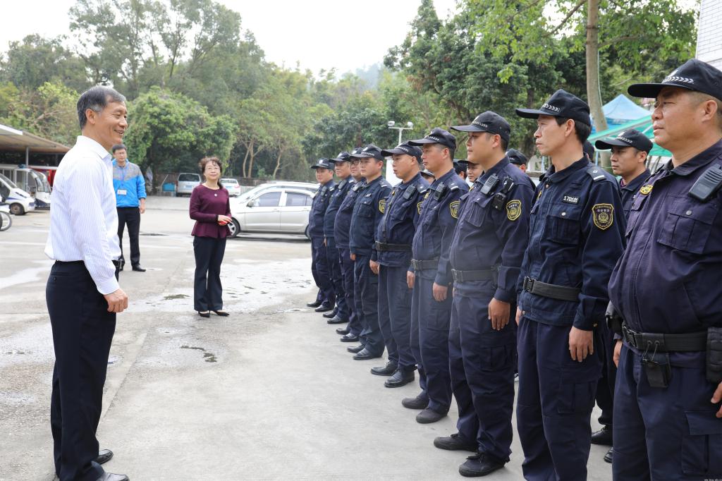 校领导一行先后走访了国际交流中心、物业公司、保安岗亭、后勤车队、绿化队、应急指挥中心、网络信息中心、京师物业、教室管理中心、学生食堂、学生宿舍管理中心、校门诊部、保卫处、配电房值班室等单位。每到一处,校领导都与值班人员一一握手,关切地询问大家的值班和生活情况,认真了解寒假期间各个岗位的运行和保障情况,并通过大家转达对他们家人的问候和新春祝福。