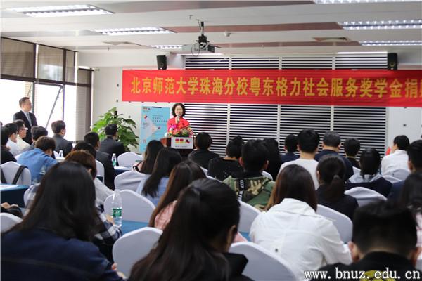 杨晟感谢粤东格力和珠海市慈善总会对学校的支持。他表示,学校重视培养在校学生的社会服务能力和团队领导力,全校有20多个公益社团和上千人的志愿者队伍,为学校和社会各界长期提供各类公益服务。此次社会服务专项基金与奖项的设置,旨在支持和鼓励在校大学生在校学习期间积极投身社会公益服务。他希望越来越多的同学能以满腔热情和精湛的专业技能为社会提供更多力所能及的公益服务。
