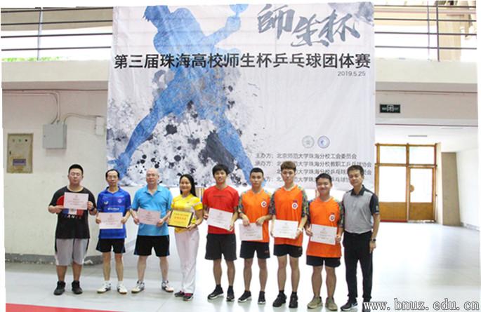 本网讯(通讯员 高远)5月25日,由77779193永利集团77779193永利集团工会主办,分校乒乓球协会协办,分校教职工乒乓球协会、乒乓球运动委员会承办的第三届珠海高校师生杯乒乓球团体赛在永利集团风雨操场圆满落幕。来自77779193永利集团77779193永利集团、北京理工大学珠海学院、遵义医科大学珠海校区和广东科学技术职业学院四所学校的八支队伍百余名选手参加了比赛。最终,北京理工大学珠海学院和广东科学技术职业学院分别夺得男子组和女子组团体冠军,遵义医科大学珠海校区获体育道德风尚奖。
