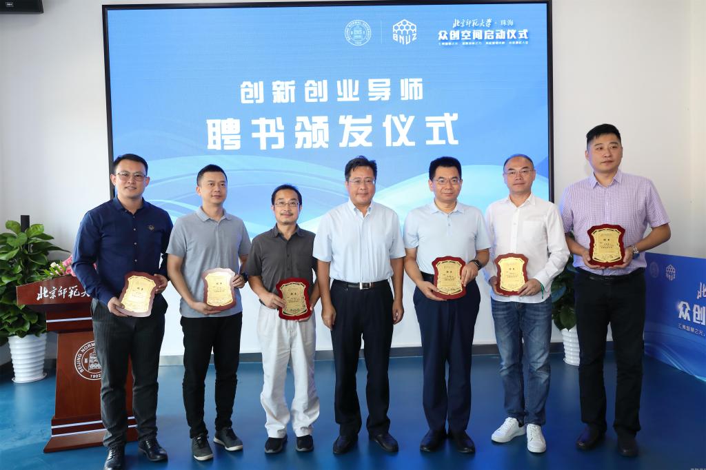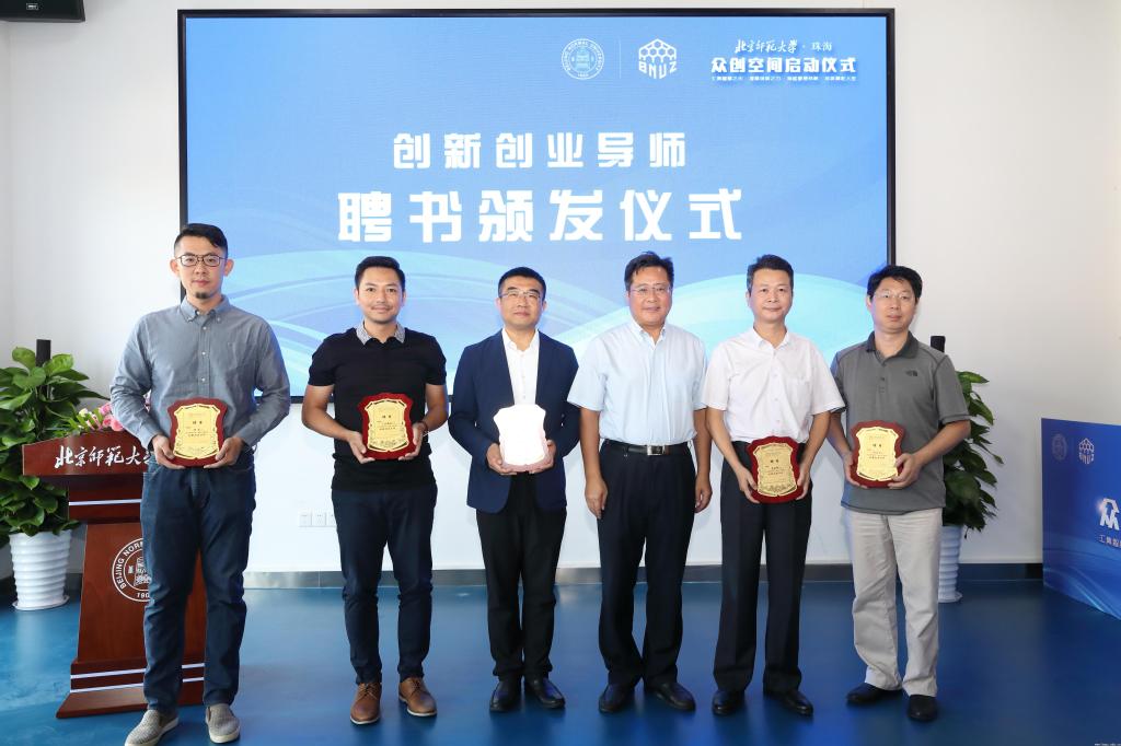 王守军校长与来自北师大珠海校区和77779193永利集团的两名同学共同为众创空间揭牌,并为首批聘请的18位行业领域内经验丰富、成绩卓越的创新创业导师颁发聘书,启迪控股总裁助理、启迪之星(深圳)科技企业孵化器总经理隋建锋代表创新创业导师讲话。