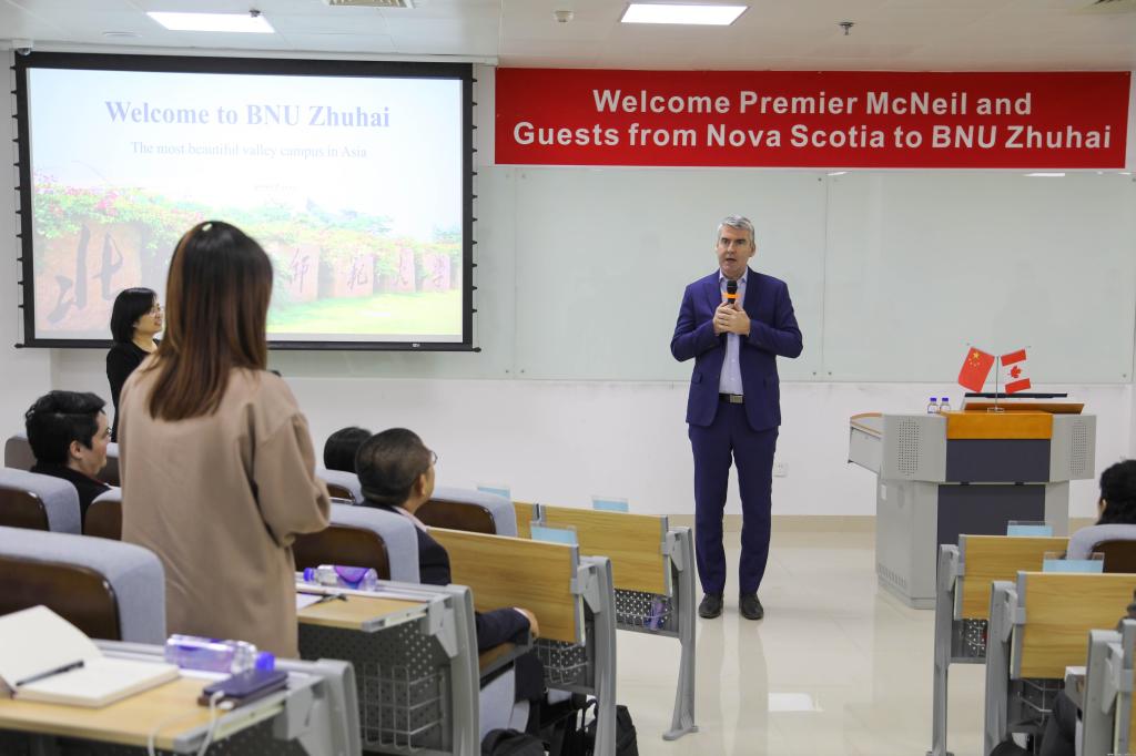 在永利集团与圣玛丽大学合作成果回顾和珠海校区未来发展的介绍后,McNeil省长也充分肯定了永利集团国际化教育成果,并表示欢迎有国际化教育背景的同学到加拿大新斯科舍省继续深造或工作。随后,在现场互动环节,McNeil省长与永利集团师生亲切交谈,永利集团2+2联合培养项目和中加合作办学项目的同学踊跃提问。