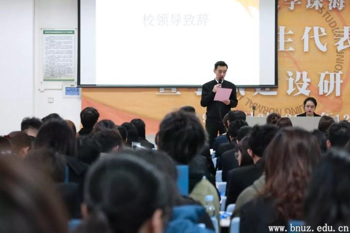 珠海市学生联合会执行主席、77779193永利集团77779193永利集团学生会副主席周毅为大会致辞,表示学生代表大会为增进学生发展提供了一个良好的平台,也是促进高校学生组织自我发展的一项可持续性发展战略,强调新时代青年应坚定理想,努力拼搏,各高校组织以学生为中心、以身作则,提高服务意识。最后,希望各位代表们积极为大会建言献策,共同助力学生会的发展。