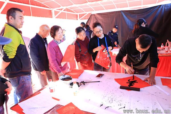 为营造校园传统民俗文化的气息,下午3点,校工会组织的迎新春送春联和拍摄全家福照片活动在京师家园如期举行。四位珠海市书法家现场豪笔泼墨,五言七言的上下对联和福字斗方,红底黑字,颜筋柳骨,共有200余幅春联送到了教职工及家属们的手中。新春,意味着团聚和团圆,为营造温馨团圆的喜庆气氛,校工会制作了“温暖京师”全家福与校铭石互相辉映的衬景,几十位教职工带着各自的家庭成员,在陈敢清、蒋春洁、黄幼帆三位资深摄影师的镜头前,拍下了2020年新年第一张温馨的全家福。