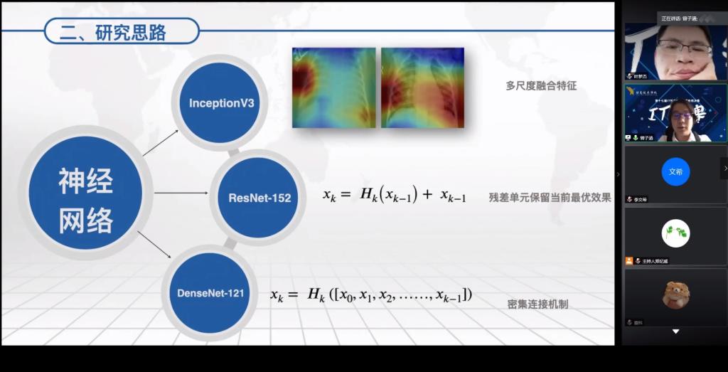 历时四个小时的在线决赛在评委老师们的鼓励和期望声中圆满结束。最后,曾子涵同学的作品《人工智能在医疗影像中的应用》获得了本届IT节的院长特别奖。此外,本次决赛还决出了一等奖3名、二等奖6名,三等奖则根据分组赛的成绩确定。