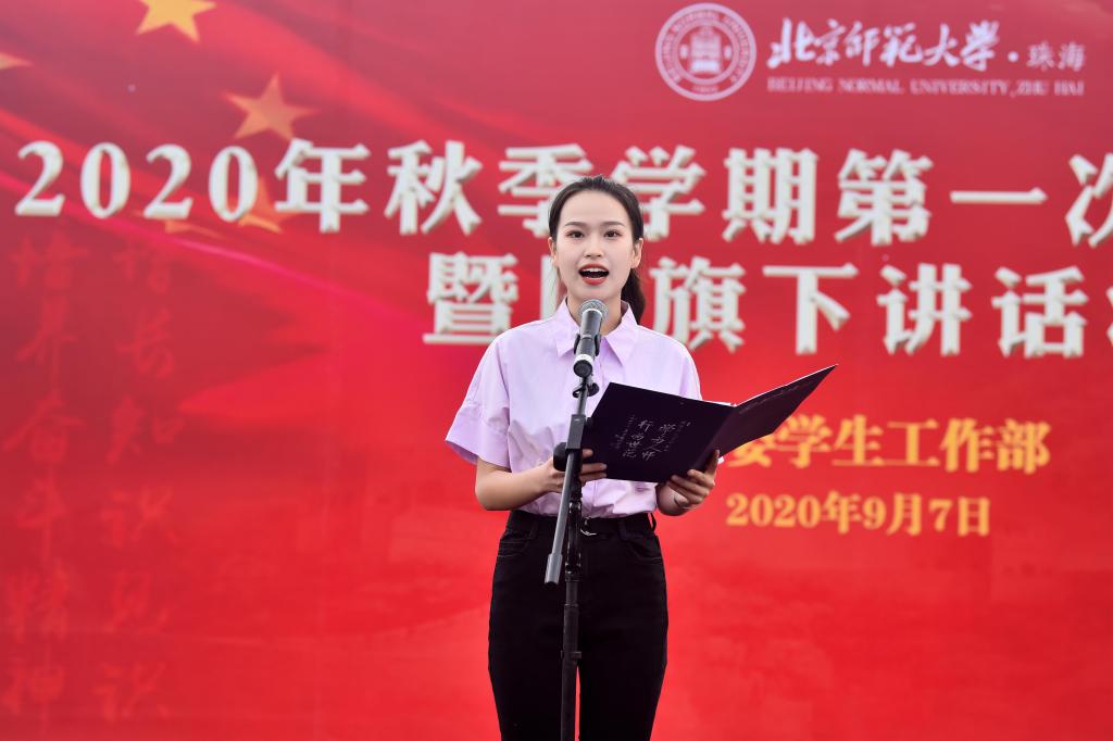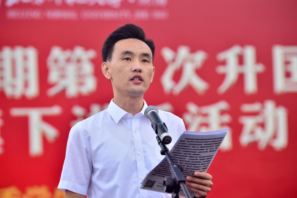 升旗仪式后,亓振华代表学校全体教职员工向对全体学生的返校表示欢迎。他希望南国北师学子立德修身,传承中华民族的爱国主义精神;追求卓越,努力成长为可堪大用的时代青年;牢记使命,投身民族复兴的伟大事业。他勉励广大师生们珍惜当下来之不易的重逢,珍惜时间,珍惜生命,珍惜生活,用勤奋学习和努力工作回报过去的巨大付出,用实际行动和优异成绩回应国家和人民的深切期待,为实现中华民族伟大复兴的中国梦、为建成世界一流大学的师大梦贡献自己的力量。