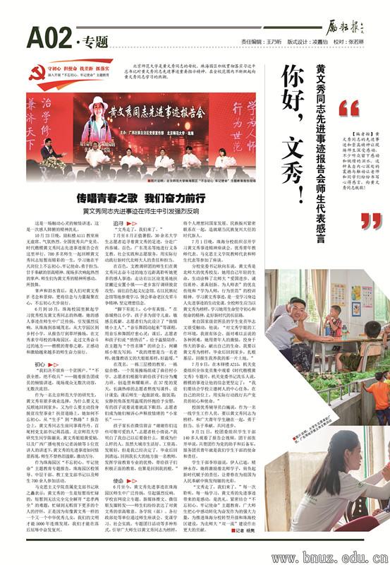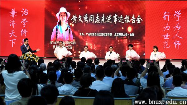 6月至今,珠海校园里掀起学习优秀校友黄文秀同志的热潮,她的感人事迹在师生中广泛传扬,引发强烈反响。从珠海到恭城、茂名,从大学园区到乡村小学,从报告厅到简易操场,在文秀求学母校的珠海园区,在文秀奋斗过的地方……楷模的青春之歌,正感动和激励越来越多的师生奋力前行。