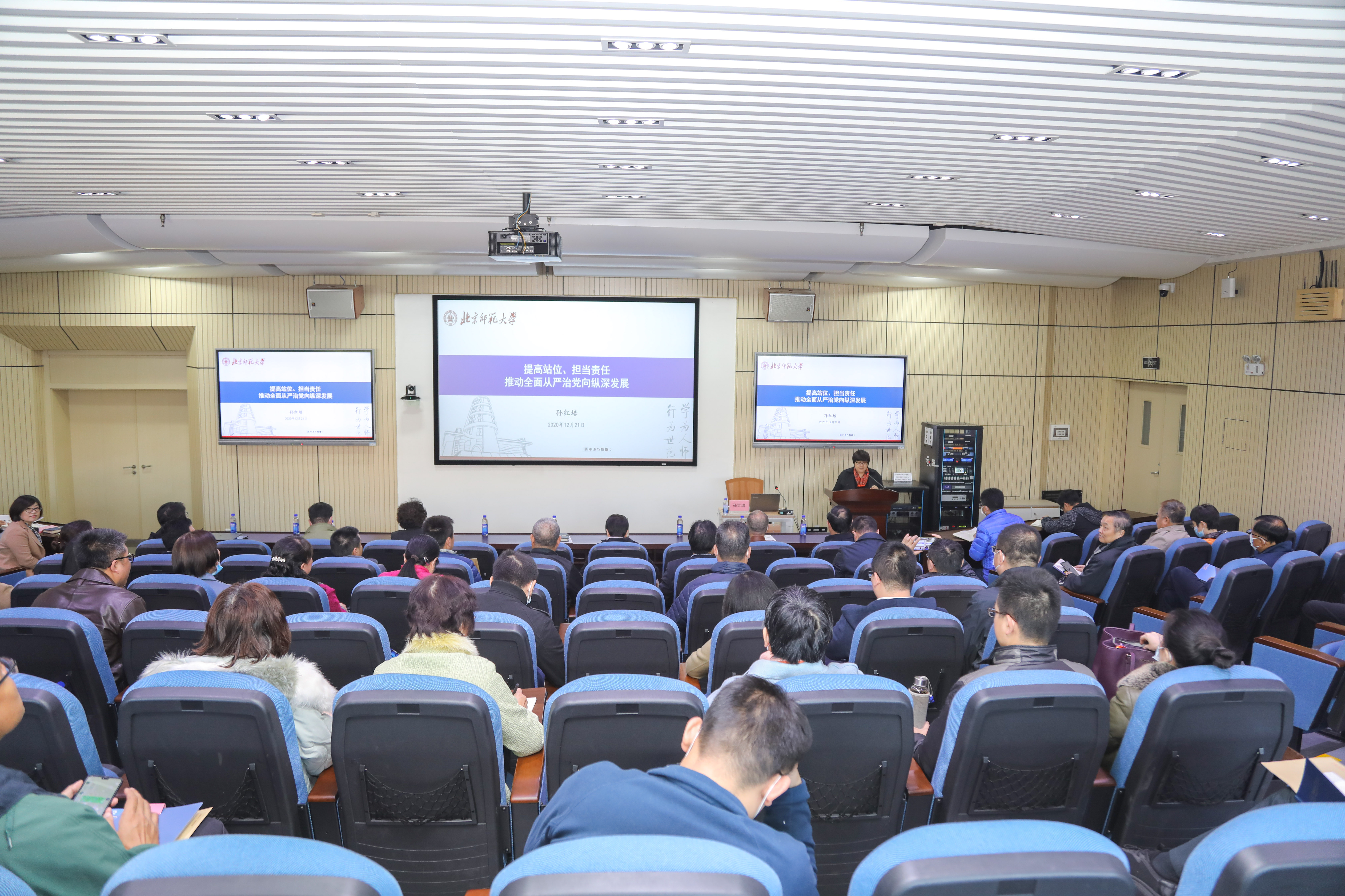 孙红培结合学校实际工作,从三个方面对全面从严治党进行了深入讲解:一是结合全面从严治党的丰富实践与制度成果、理论成果,阐述了“全面从严治党”的内涵和意义;二是从高校全面从严治党的任务及存在问题,梳理了学校全面从严治党的相关工作及成效,对如何全面从严治党推动学校事业健康发展提出了具体要求;三是要求学校各级领导干部必须切实履行“一岗双责”,狠抓能力建设,主动担当作为,自觉落实全面从严治党责任。