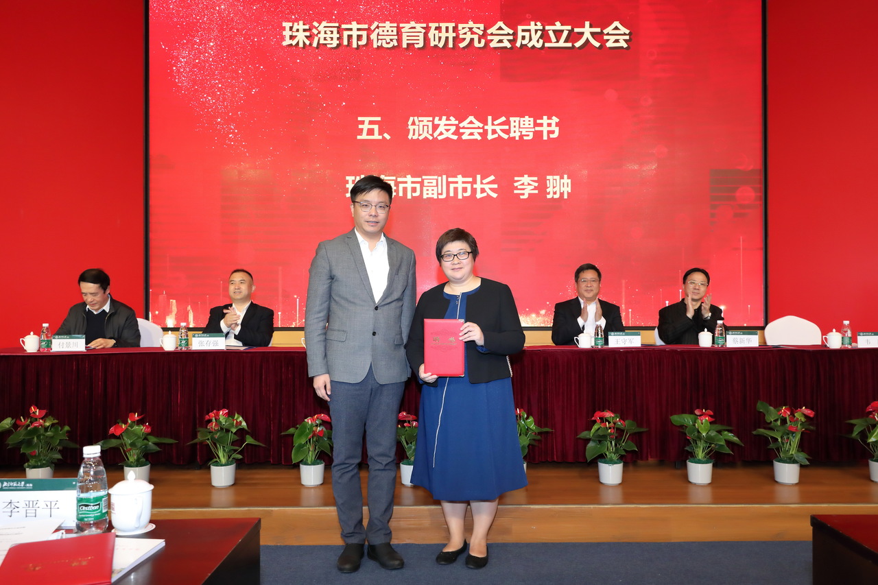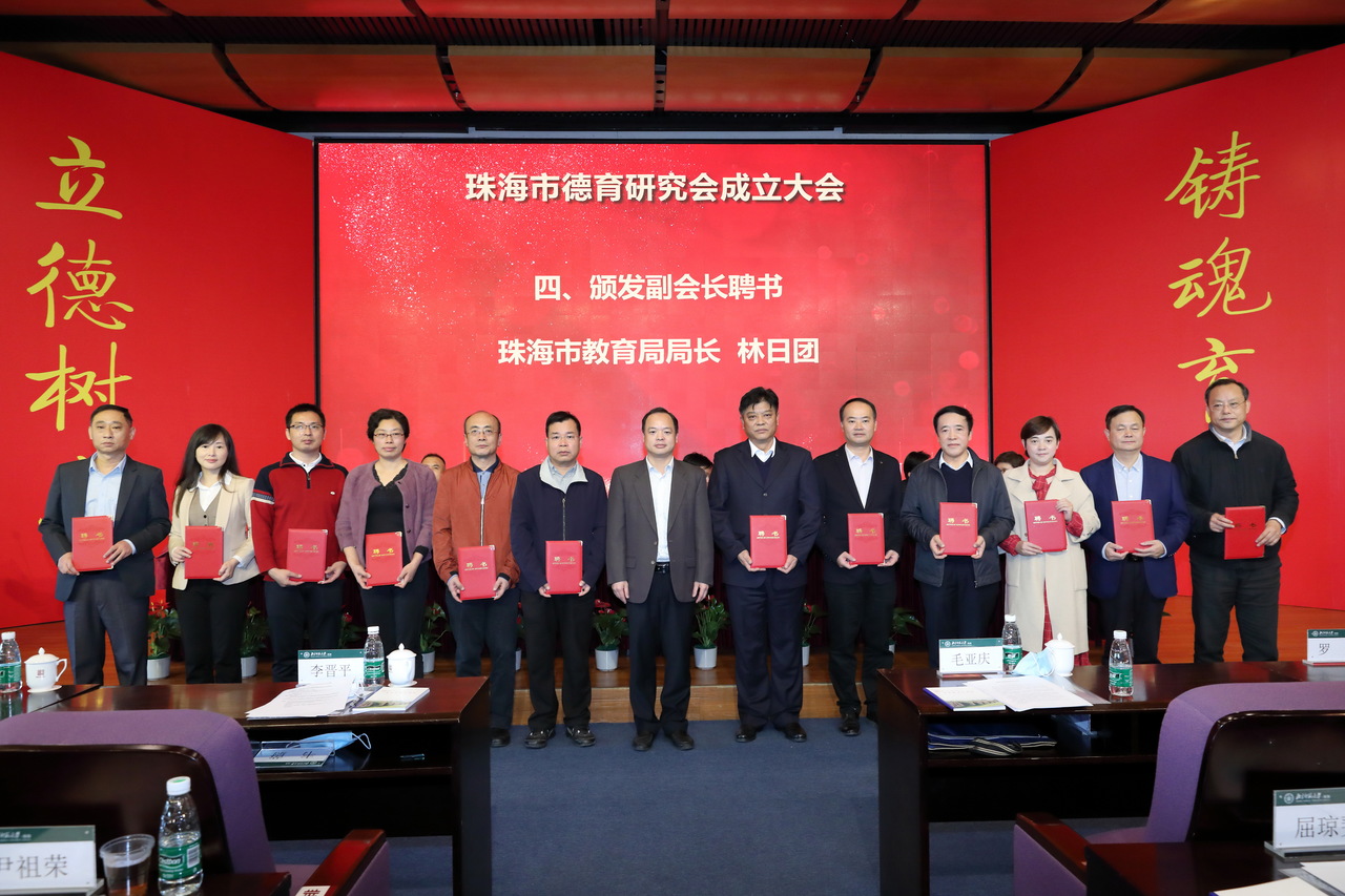 会上宣读了《珠海市教育局关于珠海市德育研究会申请成立的复函》,并为新任会长、副会长颁发了聘书。李翀、王守军、林日团、蔡新华、韦蔚、张存强等共同为珠海市德育研究会揭牌。