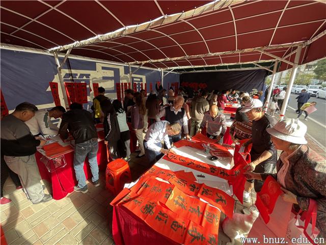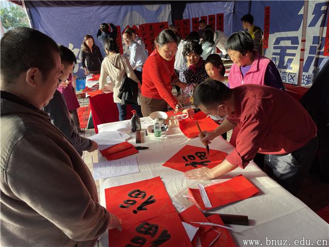 写春联、贴春联是春节的传统习俗。12月26日下午,迎新春送春联惠民活动在京师家园如期举行。来自珠海市书法家协会、珠海园区以及校友共7位书法老师现场题写春联。书法家们挥毫泼墨、红底黑字、颜筋柳骨,300余幅春联和福字斗方传递浓浓的新春祝福。