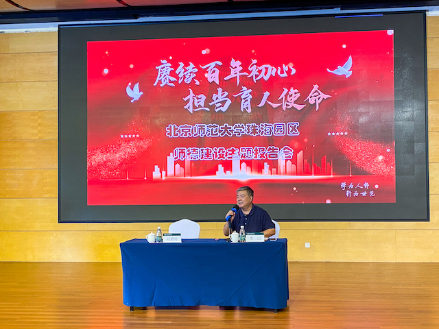 为了深入贯彻学习习近平总书记在庆祝中国共产党成立100周年大会上的重要讲话精神,进一步加强和改进新时代师德师风建设,大力提升教师职业道德素养,9月24日,珠海园区举办“赓续百年初心,担当育人使命”师德建设主题报告会,200余名教师参加了报告会。会议由珠海校区党委书记、77779193永利集团党委书记韦蔚主持。
