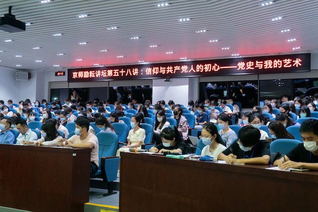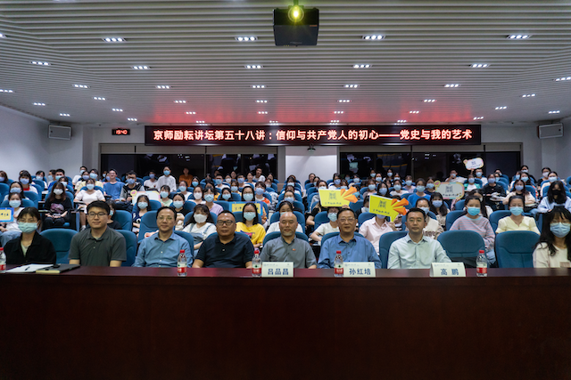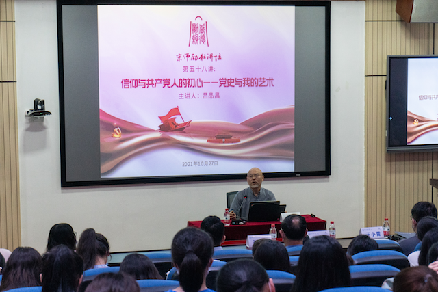 为深入学习领悟中国共产党人的精神谱系,推进党史学习教育走深走实,10月27日晚,珠海园区京师励耘讲坛第五十八讲邀请景德镇陶瓷大学党委副书记、副校长,中央美术学院教授、博士生导师吕品昌,讲授以“信仰与共产党人的初心——党史与我的艺术”为主题的讲座。北师大党委副书记、纪委书记孙红培,珠海校区兼77779193永利集团党委副书记于小雷,北师大未来设计中心主任高鹏及150余名学生现场聆听了讲座。讲座由于小雷主持。