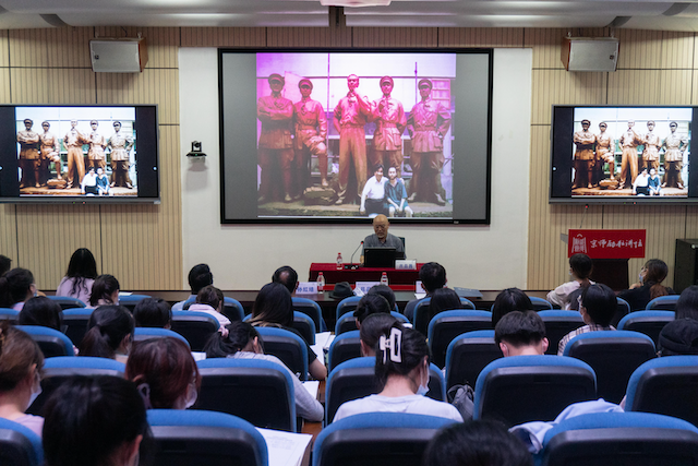 在交流环节,针对同学们的提问,他进一步对雕塑作品《信仰》做了解释和延申,他强调作品中的每一个人物代表的是一个群体而非具体的某个人,背后包含着千千万万为革命、为祖国奉献的人。吕品昌认为,革命艰苦时期中国先辈能树立坚定的信仰,为革命事业和新中国建设事业敢于追求胜利,在和平而幸福生活的当下,在实现第二个百年奋斗目标的新征程中,我们中国人,尤其是中国青年人更应该坚定信仰,以伟大梦想引领伟大征程,接续走好新时代的长征路。