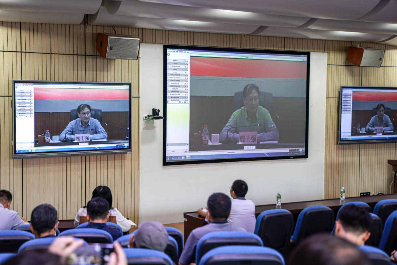 为深入学习贯彻《中国共产党普通高等学校基层组织工作条例》(以下简称《条例》),全面提升全省高校党的建设工作制度化、规范化、科学化水平,11月1日,省委教育工委举办第37期广东高校学习论坛,特别邀请教育部思想政治工作司司长魏士强作学习贯彻《条例》专题辅导报告。会议由省委教育工委委员、省教育厅党组书记朱孔军主持。珠海园区在木铎楼A215设立视频分会场,园区领导班子成员、各职能部门负责人、各二级党组织负责人以及教工党支部书记等参加会议。