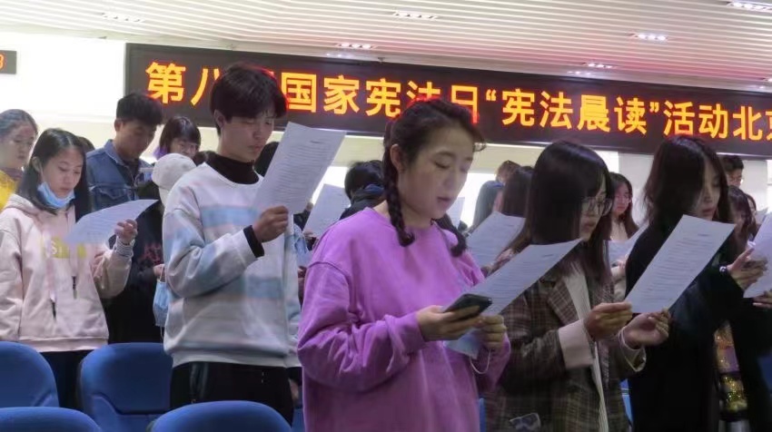 12月3日,2021年国家宪法日教育系统“宪法晨读”活动在木铎楼举行。园区师生代表130多人参加了本次活动。与会师生齐声诵读《中华人民共和国宪法》的部分条文,齐唱歌曲《宪法伴我们成长》,聆听了教育部党组成员、副部长宋德民同志的视频讲话,观看了第六届全国学生“学宪法 讲宪法”活动全国总决赛获奖代表的展演。