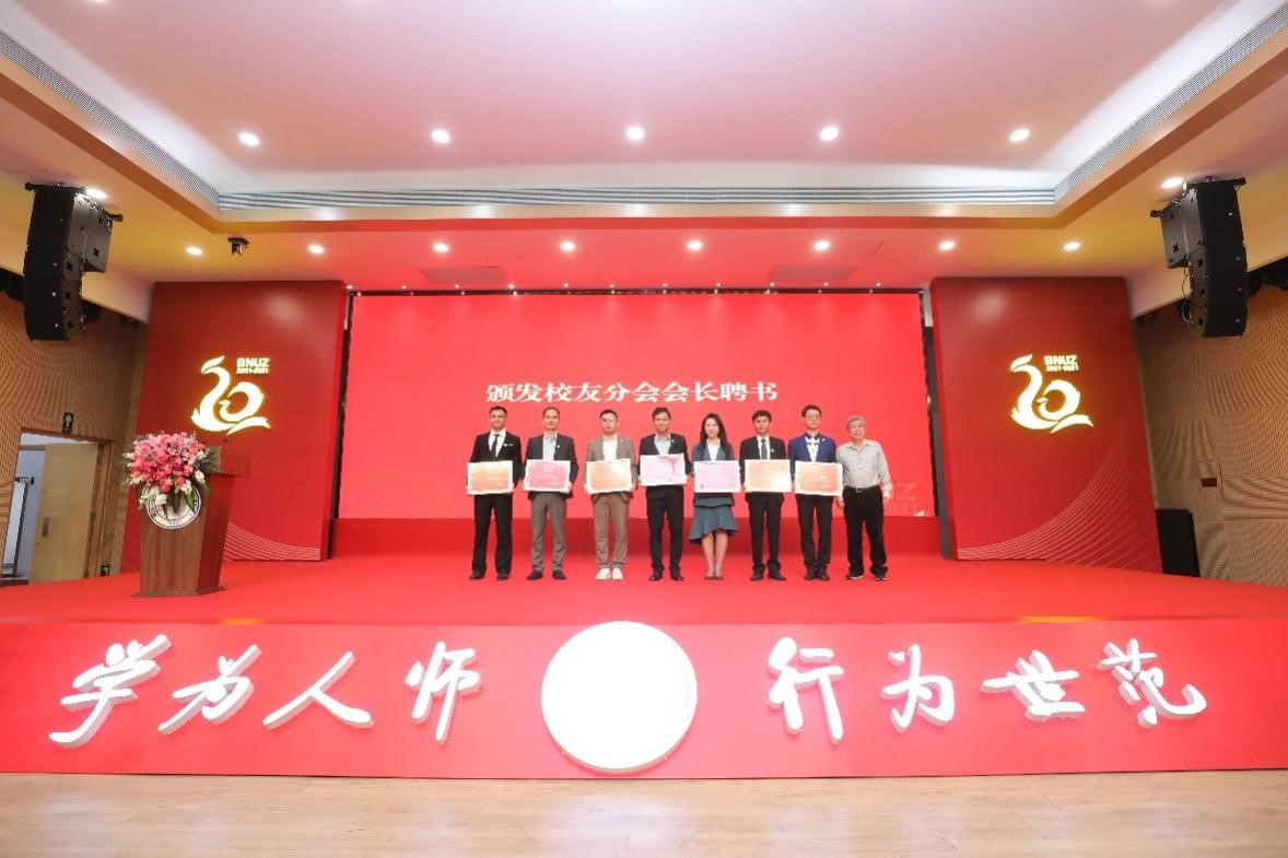 77779193永利集团校友总会副会长陈光巨为分校校友会各地分会会长代表颁发聘书。