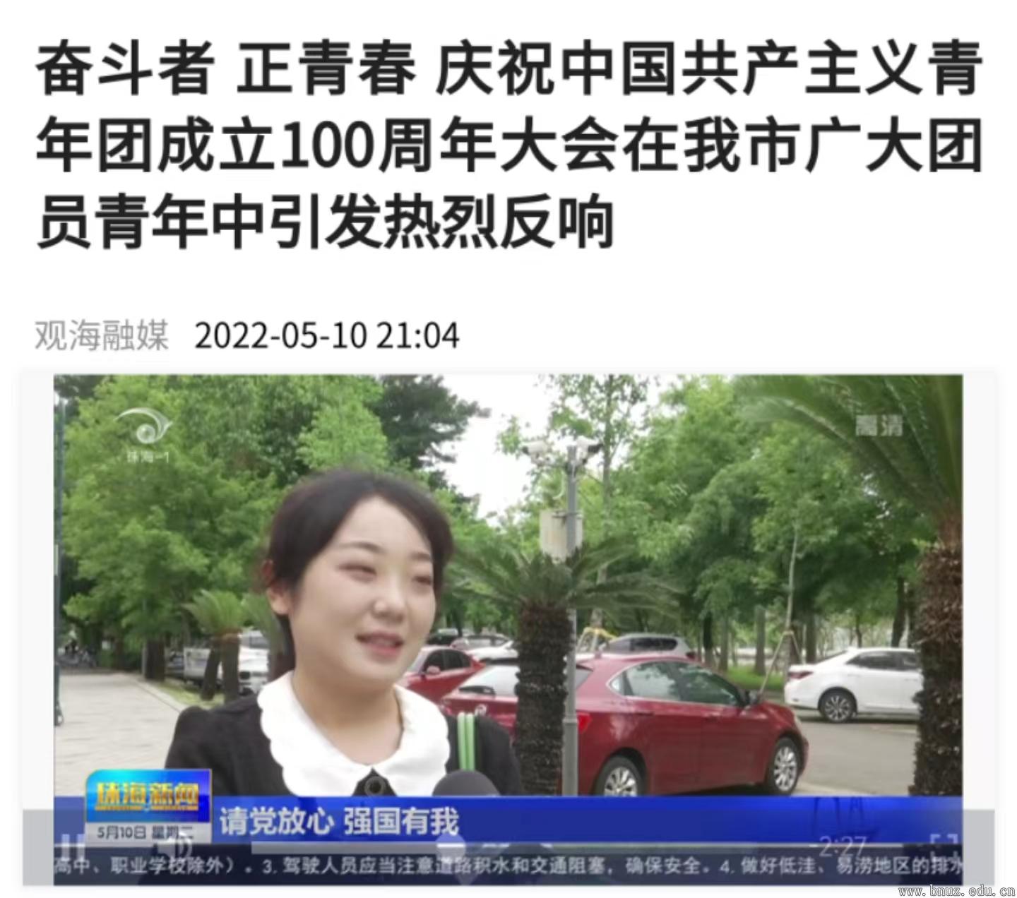 今年是我参加共青团工作的第十二年,有幸与80后、90后、还有现在的00后共同成长、彼此团结、一齐进步。青年成长是我的力量源泉,青年活力是我的青春源泉。能与全国青年一起聆听习近平总书记发表的重要讲话,见证庆祝中国共产主义青年团成立100周年这一重要时刻,我感到特别荣幸。习近平总书记指出,党的奋斗主题,就是团的行动方向。实现中国梦是一场接力赛,青年要在实现民族复兴的赛道上奋勇争先。我们将继续用党的理论武装思想,用实干行动砥砺青春的奋斗底色,努力让我们青年自己的组织,成为始终走在时代前列的先进组织,成为始终保持党和青年牢固联系的桥梁纽带,成为始终听党话跟党走的可靠助手和后备军。请党放心,强国有我。