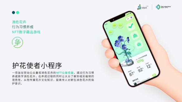 “护花使者”是一项旨在带动公众重视濒危花卉的NFT养成型珍稀花游戏小程序项目,通过行为习惯养成数字濒危花卉,在养成过程的同时让大众了解到相关植物的濒危性,从而传播花卉文化知识,提高世人对野生濒危花卉的保护意识。