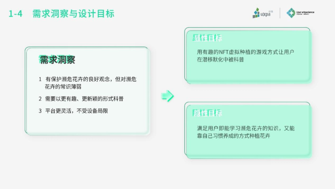 项目团队发现,目前濒危花卉自然资源紧张,保护观念差,更严重的是社会关注度低。针对这一痛点,从科普方式切入,作为设计重点。