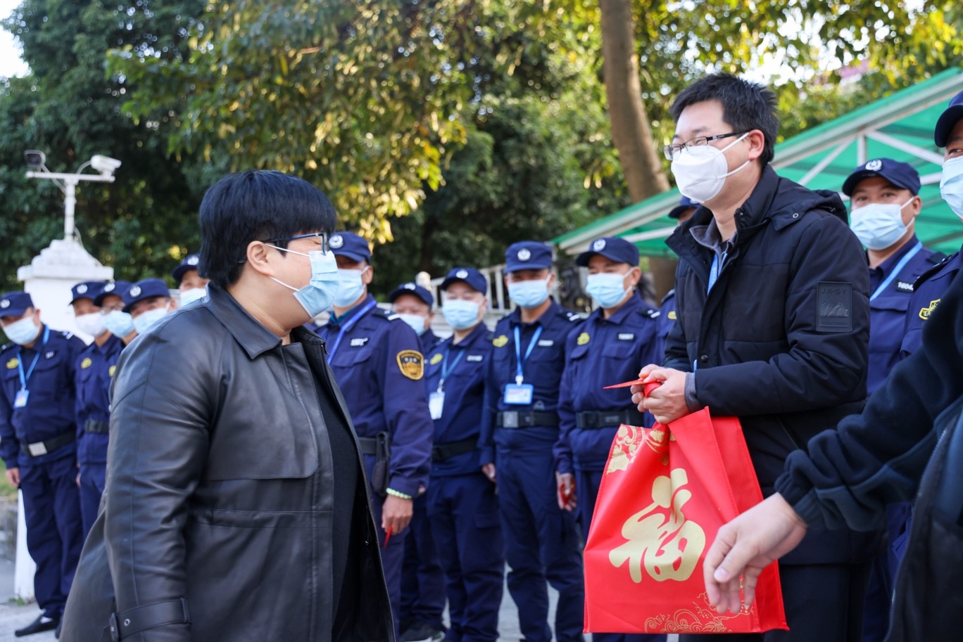 每到一处,园区领导与坚守一线辛勤工作的职工亲切握手、热情交谈,感谢他们为保障校园安全和师生生活付出的努力,并代表学校为他们送上新春的祝福和春节慰问品。园区领导表示,希望大家继续做好各方面的工作,确保师生员工过一个欢乐、祥和、文明的春节。在岗工作人员感谢园区领导的关怀与肯定,大家一致表示,春节期间将认真坚守岗位、勤恳工作,确保保障服务不断线,维护校园安全稳定。