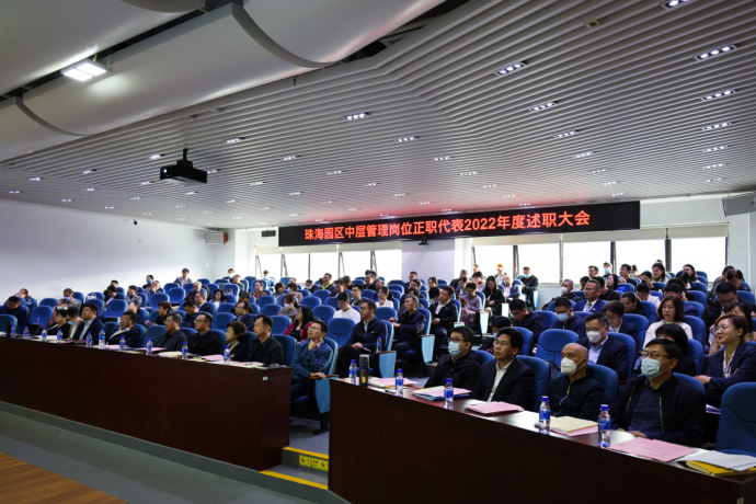 会上,湾区国际商学院、环境与生态前沿交叉研究院、未来设计学院、校区继续教育与教师培训学院、校区教务部、校区人才人事办公室、校区科研办公室、校区财务办公室、园区学工部门、园区团委的中层正职进行了现场述职,重点汇报了本单位2022年工作成果、核心作用发挥、个人表现等情况。述职结束后,与会人员对述职人员分别进行了线上民主测评。