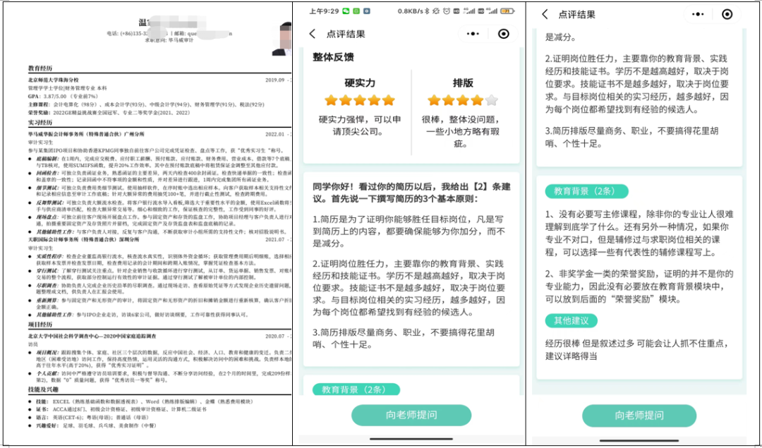 本次大赛涵盖6节简历基础课和22节不同行业岗位的简历撰写指导培训课、包含专业的简历点评展示和即兴问答的线下简历大赛决赛。邀请资深导师于比赛过程中全程陪伴指导,根据同学的简历情况提供建议和改善方案。共有两百余名不同专业的同学报名参加,反响良好。