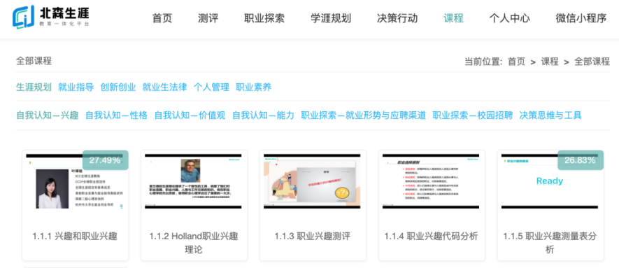 为帮助同学们更好地激发生涯规划意识、做好求职就业准备,就业部门联合北森生涯学院推出了北森生涯教育一体化平台,帮助同学们探索职业发展。同学们可以通过生涯测评网站的现状评估、自我探索、职业探索、决策行动等模块评估测试,助力制定求职行动计划。