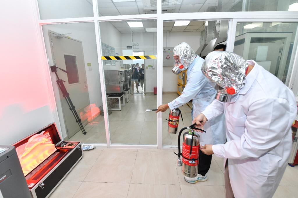 启动仪式后,协办单位的专业技术人员结合具体案例为师生作了题为《实验室安全事故预防与应急》的培训讲座,从实验室用电安全、用气安全、危化品安全等多个方面,讲解了各类事故的防范措施和应急处置办法,并对实验室常见应急防护器材的使用方法及注意事项逐一进行了讲解和演示。