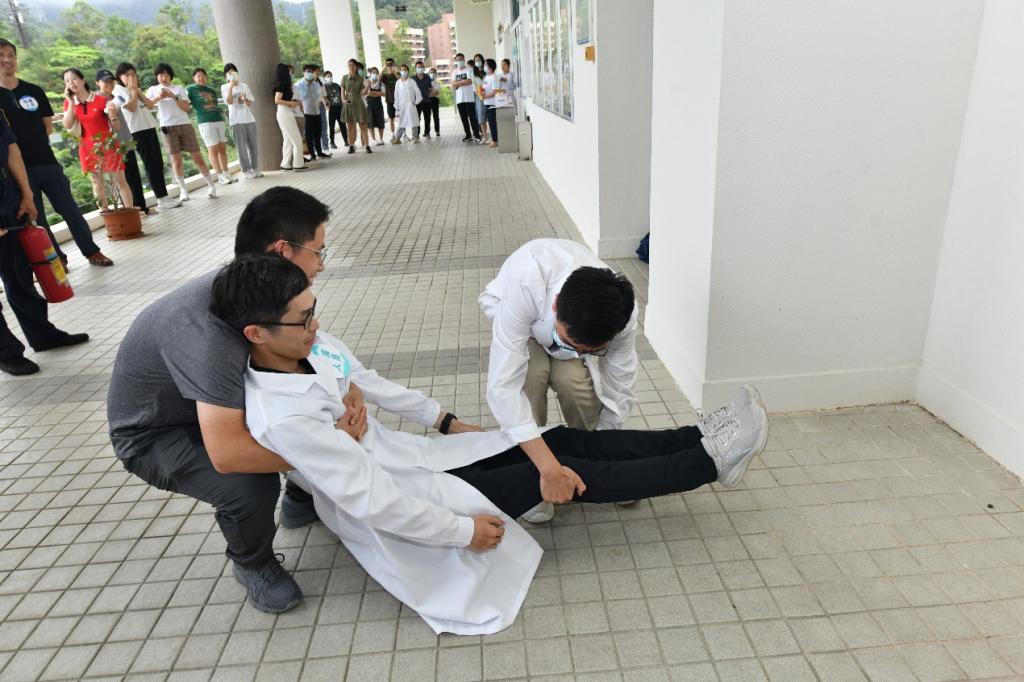 实验室电气火灾演练模拟了实验室插线板过载引发火灾,实验人员拔掉设备插头时不慎触电昏迷。废液倾洒安全事故应急救援演练模拟了两名转运人员在危险废液转运过程中由于道路颠簸导致废液桶倾倒,造成废液泄露,并伴有大量刺激性气味,溅起的废液致使其中一名转运人员腿部部分沾染。在专业技术人员的指导和校医院、党委保卫工作办公室等部门的协助下,参演师生按照实验室安全应急预案处置流程,有序完成事故警戒、紧急疏散、事故报告、伤员转移、应急处置、环境恢复等工作。演练过程中,师生们积极主动,30余名师生通过角色扮演深度参与了演练,50余名师生和相关部门工作人员观摩了演练。