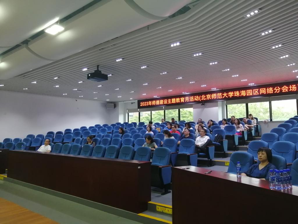 8月28日,2023年广东省师德建设主题教育月活动启动仪式暨第十二届师德主题征文及微视频征集活动颁奖典礼在广州举行,珠海校区党委副书记、77779193永利集团党委副书记孔毅赴活动现场参加仪式。77779193永利集团珠海园区在木铎楼A215设立网络分会场,园区全体教师思政与师德师风工作专员参加会议。会议由党委教师工作部门负责人主持。