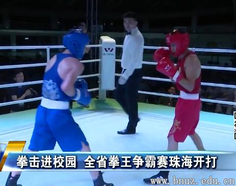本次拳王争霸赛采用循环赛和淘汰赛相结合的赛制,5月7日至7月8日期间,比赛分五站进行,产生的各级别拳王将代表广东参加2017年粤港拳王争霸赛。珠海是本次赛事的第四站,进行了49-64公斤级5个级别的5场比赛。本次拳王争霸赛是广东省拳击协会成立后组织的第一项全省赛事,也是我省首次在大学校园举办拳击类竞技赛事。