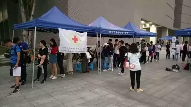两天来,校园图书馆门前都排着长长的队伍,同学们挽起袖子,加入到献血队伍中。